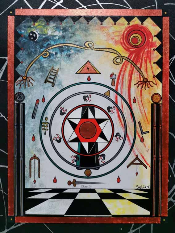 - Ferenc Sebök Belgium, Charity, 2020, acrylic and ink on cardboard, 48 x 36 cm