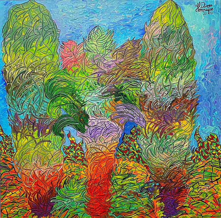 - Henrique Diogo, Brazil, Pine Trees That don’t Stop Growing, 2023, acrylic on canvas, 80 x 80 cm