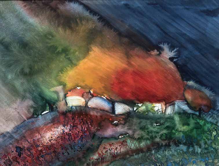 - Aldina H Beganovic, Italy, Exodus, 2018, fluid acrylic and acrylic on paper, 24 x 34 cm