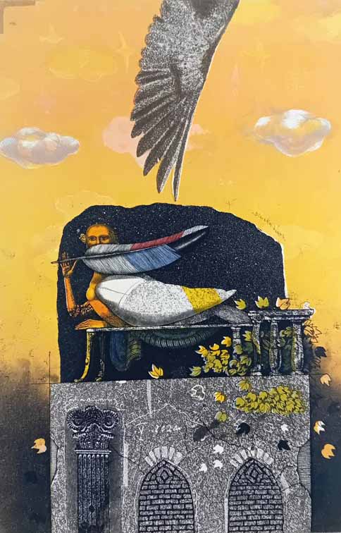 - Dimo Kolibarov, Bulgaria, cycle“Try To Fly-Waiting For“, 2024, etching,aquatint, 20 x 30 cm