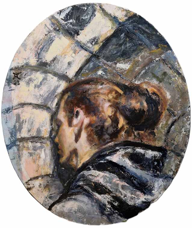 - Aga Cela,The Netherlands, Young Man Under An Ancient Archway, 2023, oil on canvas, oval, 60 x 50 cm