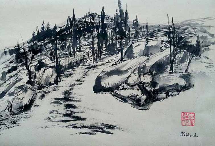- Sylviane Leblond, France, On the road, 2018, encre de chine sur papier de riz, 40 x 30 cm