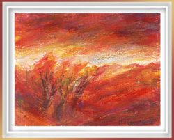 Im Gegensatz zu den großen Acryl-Bildern wurden die kleinen Bilder mit einer Mischtechnik aus Acrylfarben und Ölpastellkreide auf Papier gemalt. Während sich die Farben in den Acryl-Bildern zwischen atmosphärischer Tonigkeit bewegen, strahlen die drei näher erläuterten kleinen Ölpastelle satte samtige Farbeffekte mit irisierender Leuchtkraft aus. Mit einem großzügigen und schmuckvollen Rahmen sind sie deshalb ebenso bestens dazu geeignet, in Wohnräumen in Szene gesetzt zu werden, um die Aufmerksamkeit auf ein Kunstwerk zu lenken.